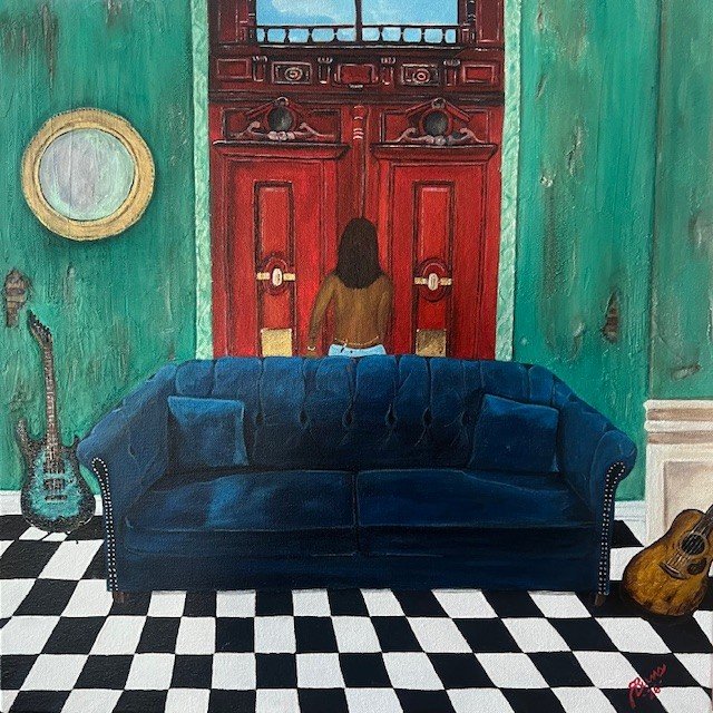 24 x 36 acrylic on canvas What happens when the music stops? I wanted to paint something that was thought provoking. What happens to life when the music stops playing? Silence takes over. What moves you through life when there is no music? What sustains you?